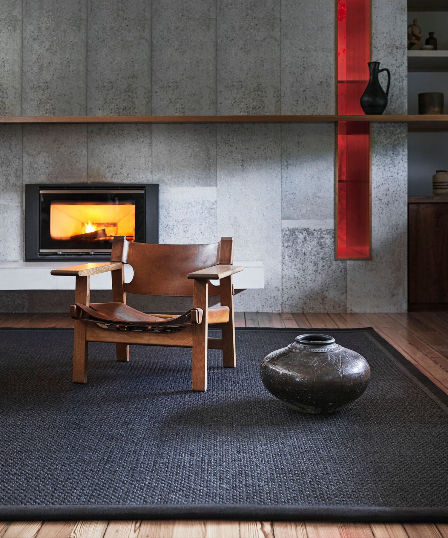 Wool borders enhance the rug’s warmth and texture, with hues like Midnight, Pebble and Sandstone reflecting a natural, earthy aesthetic. This option is ideal for those seeking both comfort and durability.