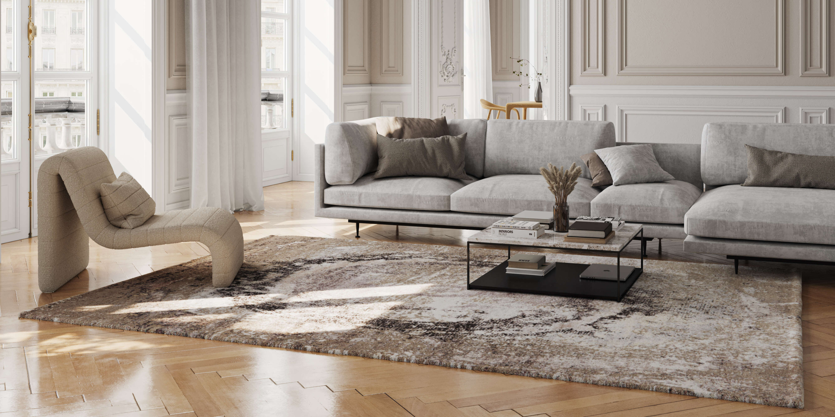 120x170cm or 140x200cm rugs are perfect for smaller rooms or more compact seating areas. Placing the rug just in front of the sofa, or under a coffee table can help to create a sense of cohesion in the space.