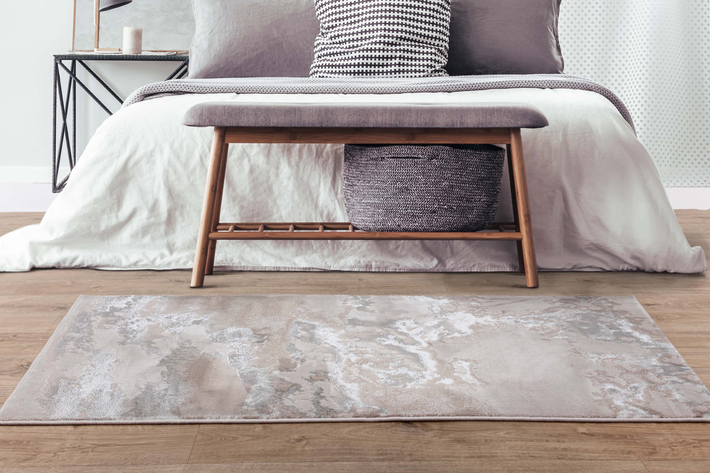 Luxury without the price tag, this stunning rug features an exquisite marble design. Touches of grey and silver add a beautiful lustrous finish that shimmers gently under light. Woven from a polyester and polypropylene blend, this rug has a velvety texture that is delightfully soft underfoot, while the polypropylene grants durability. Place in a living room or bedroom for an elegant focal point that is guaranteed to draw the eye.