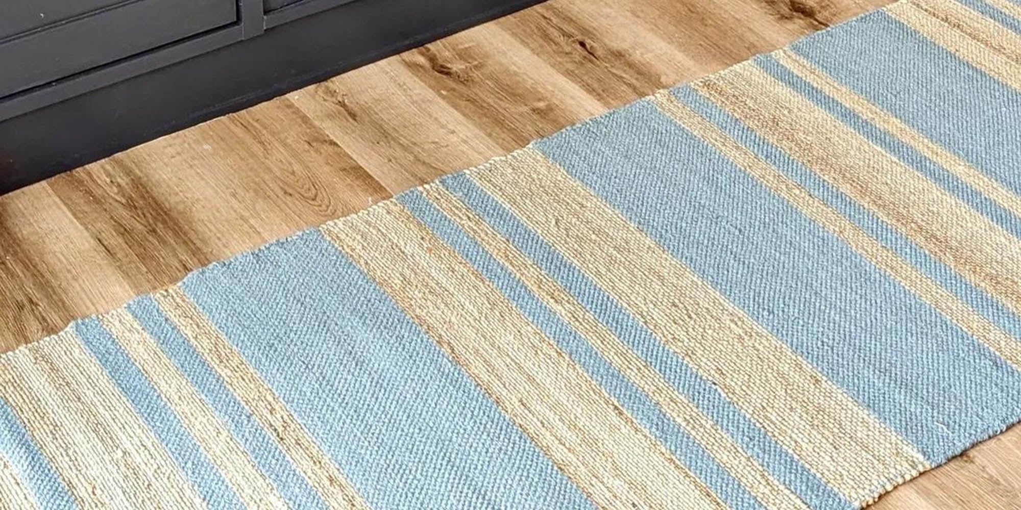 Handwoven from jute and cotton, this runner features alternating beige and and duck egg blue stripes; guaranteed to add texture and warmth to any decor. Both wool and cotton are known for their durability making this runner ideal for high traffic areas. Place in your hallway or foyer for an eye-catching entry point or place in your kitchen for a touch of interest and colour. Available in both runner and rug sizes.
