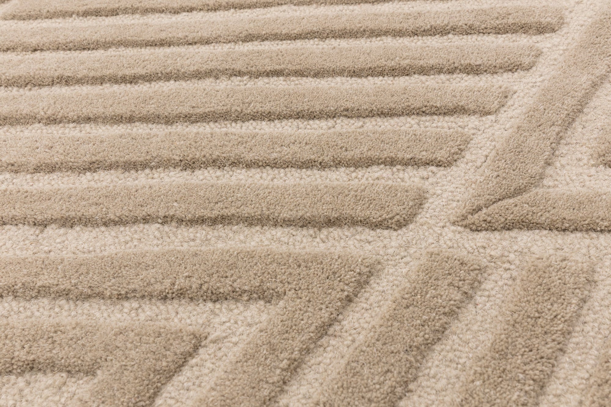 Elegantly sculpted to create a raised geometric design, the stylish Hague Taupe area rug will add a contemporary touch to your interior. Handtufted from pure wool, the pile is luxuriously thick and soft underfoot. Wool rugs are hard-wearing, and quickly regain their height and volume after furniture compression.
