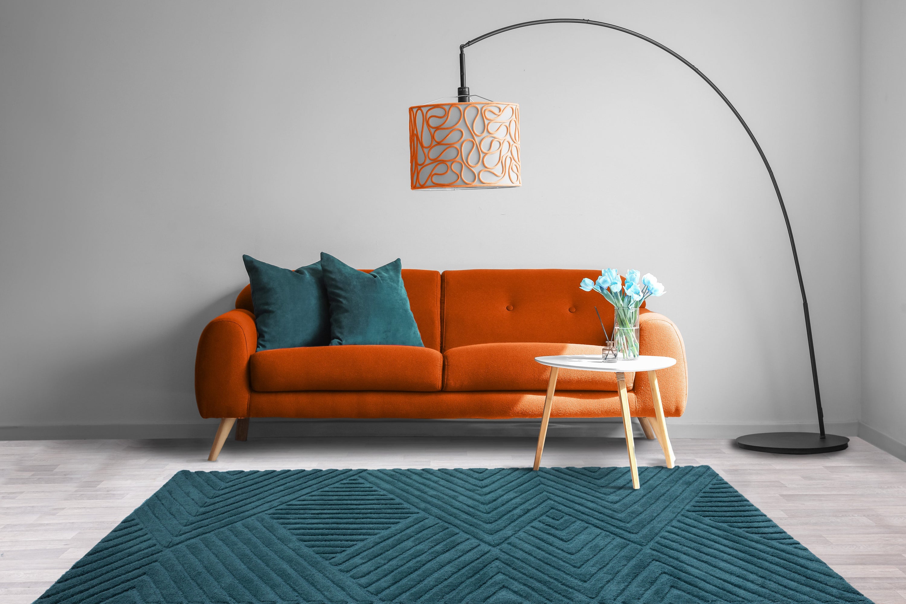 Elegantly sculpted to create a raised geometric design, the stylish Hague Teal area rug will add a contemporary touch to your interior. Handtufted from pure wool, the pile is luxuriously thick and soft underfoot. Wool rugs are hard-wearing, and quickly regain their height and volume after furniture compression.