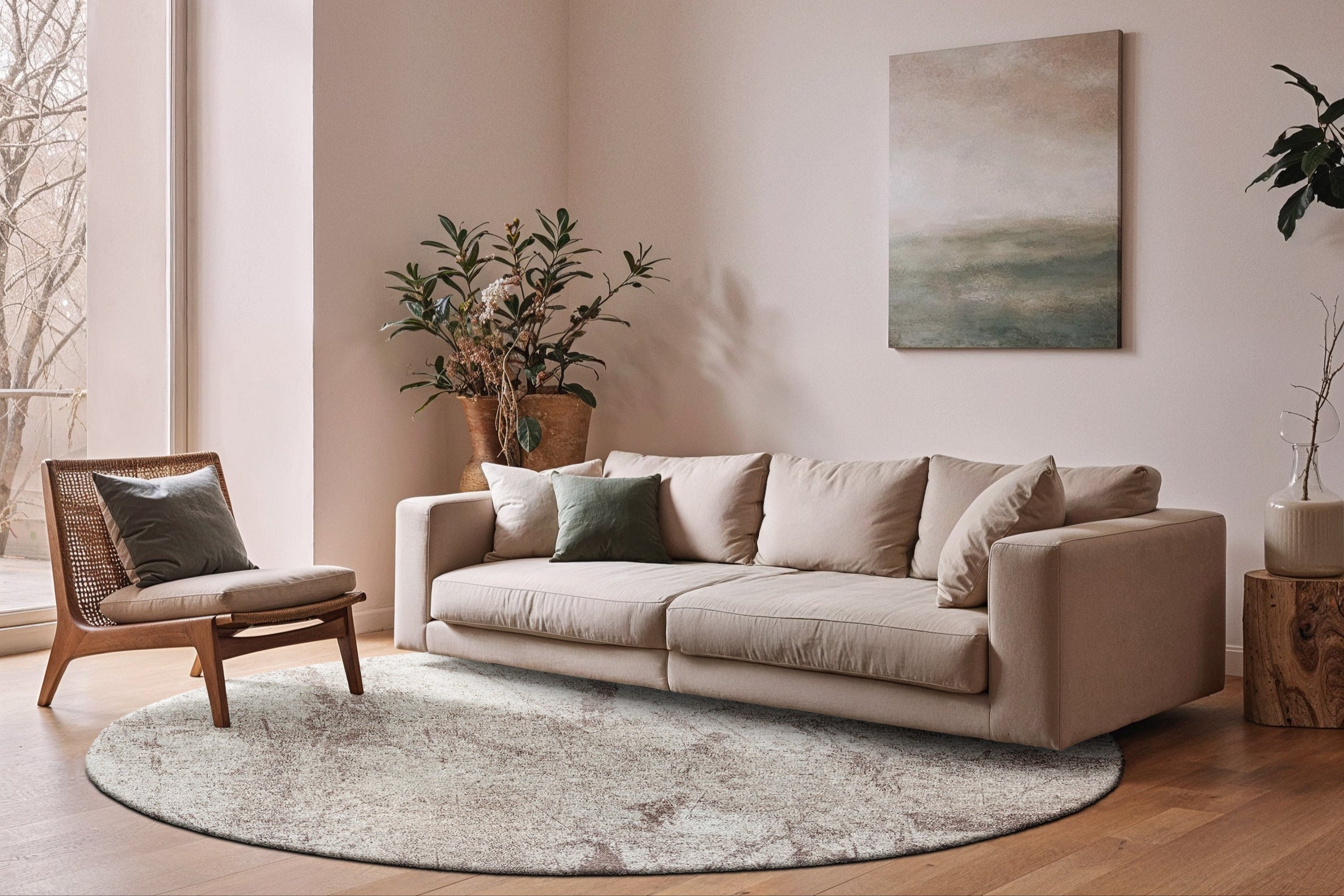 Due to their lack of pile, circular flatweaves are an ideal choice for placing under furniture such as round dining tables or for placing in hallways and offices.
