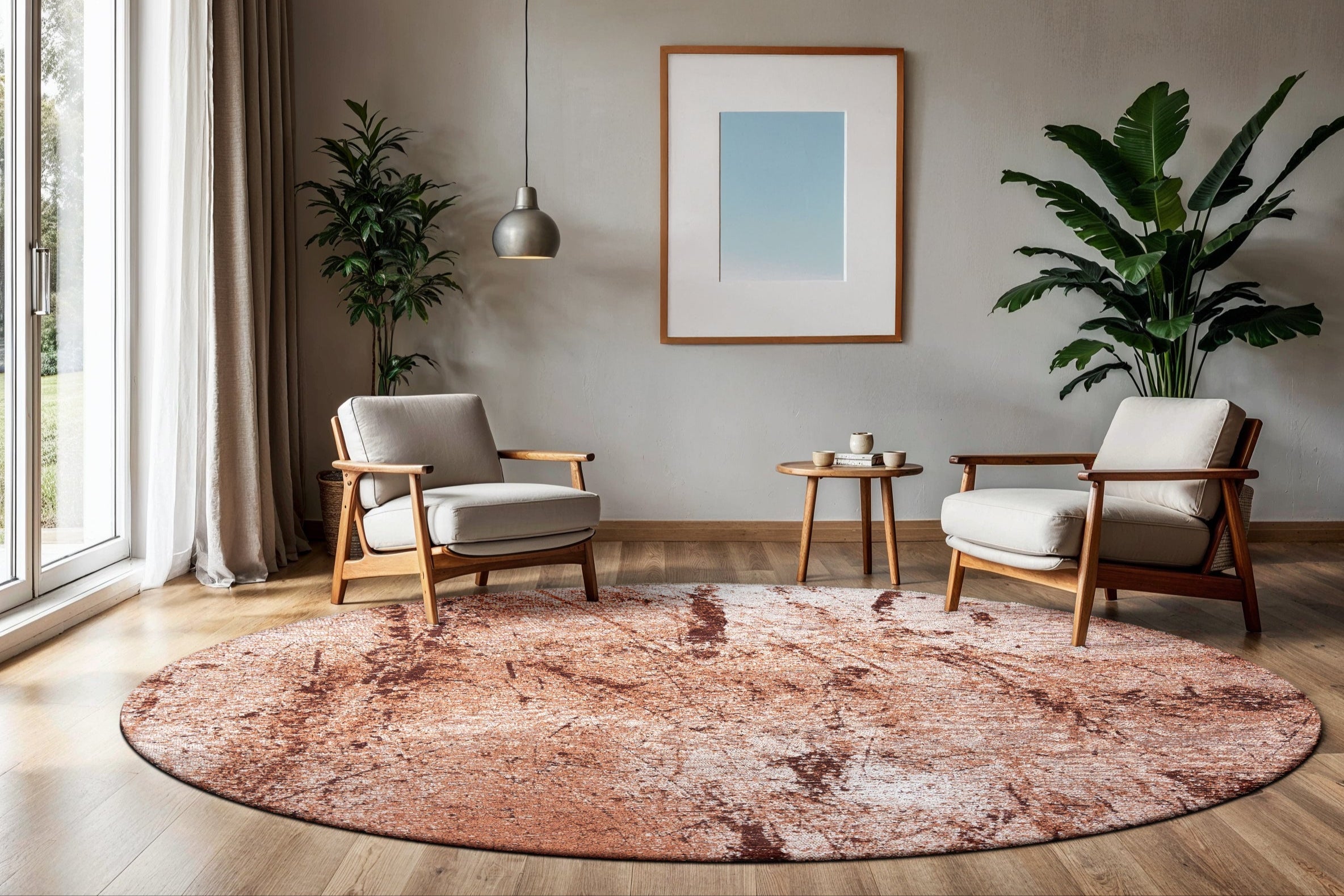 Woven from 100% polyester, of which 40% is recycled, the Mad Men Collection Sol Round Tandoori Rug by Louis De Poortere is the perfect choice for modern and contemporary homes. This sophisticated flatweave rug is washable and offers exceptional durability. Due to their lack of pile, flatweave rugs are an ideal choice for placing under furniture, making them particularly suited to living rooms, dining rooms and offices.