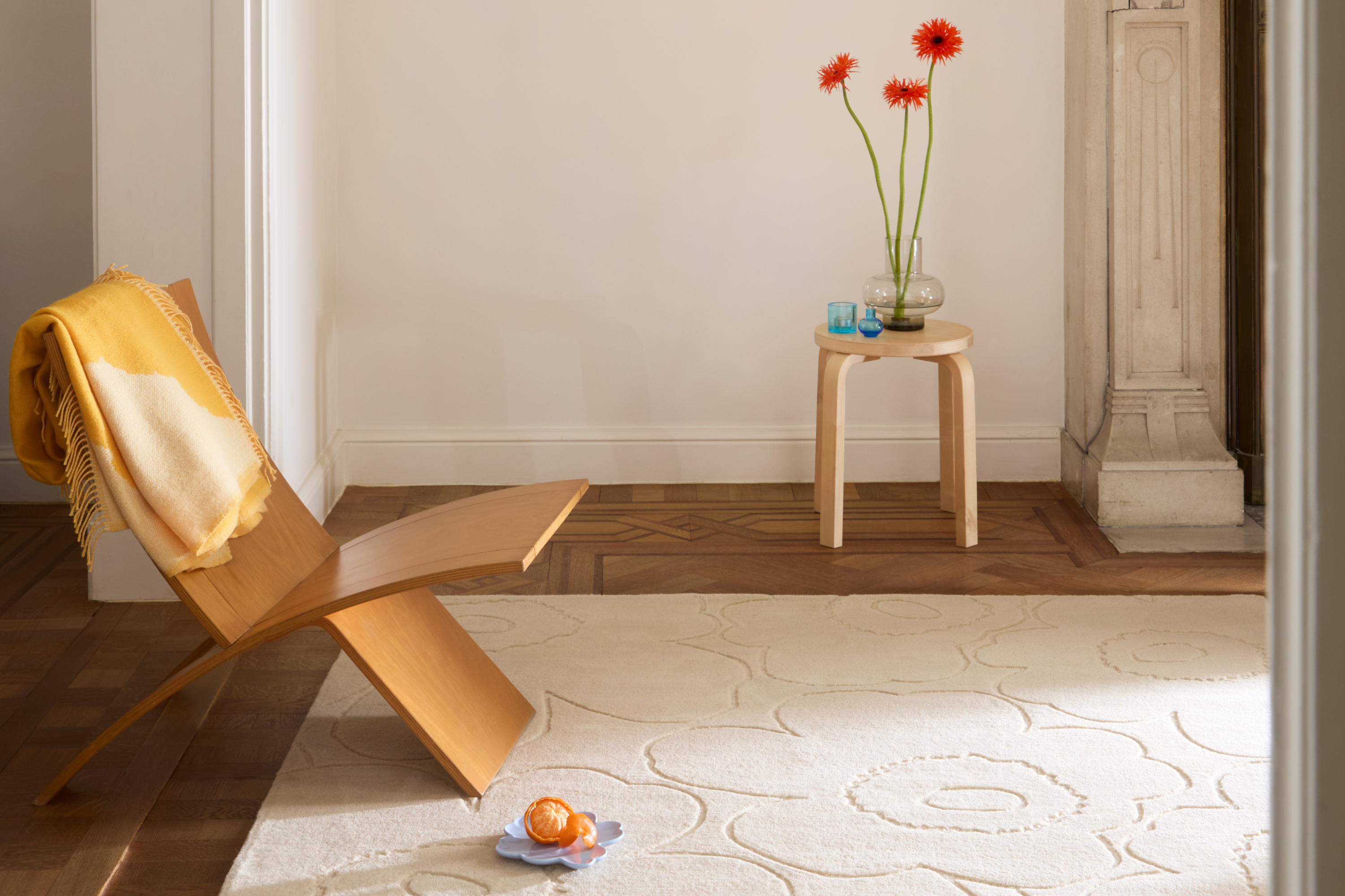 Elevate your living space with the quiet elegance of the Marimekko Piirto Unikko Natural White 133701 rug. This piece features a sophisticated tone-on-tone floral pattern in warm cream and white hues. The design is achieved through expert carving and varying pile heights, creating a tactile 3D effect that captures light and adds depth without overpowering your room.