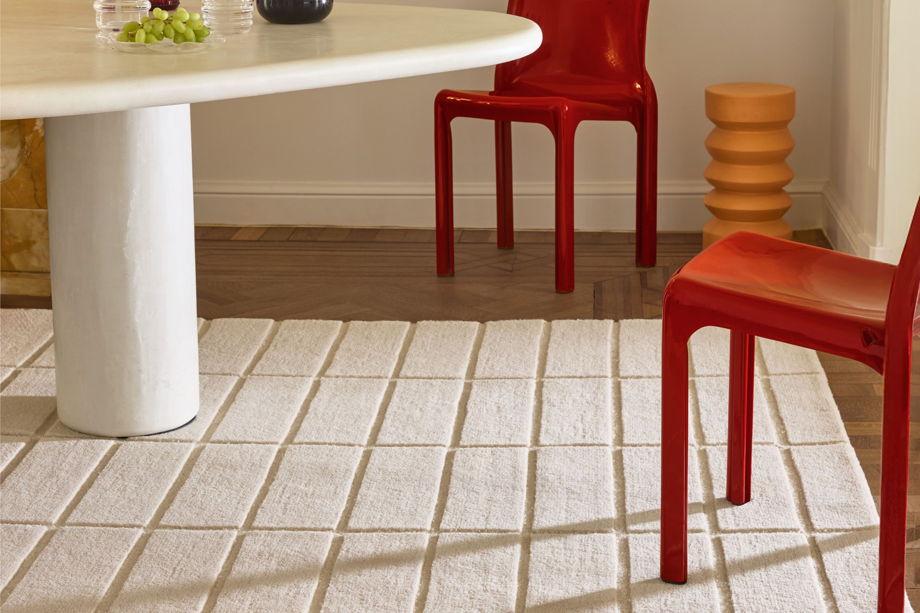 Define your space with the bold, clean lines of the handtufted Marimekko Tiiliskivi Natural White 132901. This piece brings a touch of modern geometry to your home, featuring a striking grid pattern of warm white lines set against a cream white background. It's the perfect way to add visual interest and a pop of colour to your living room, dining room or bedroom.