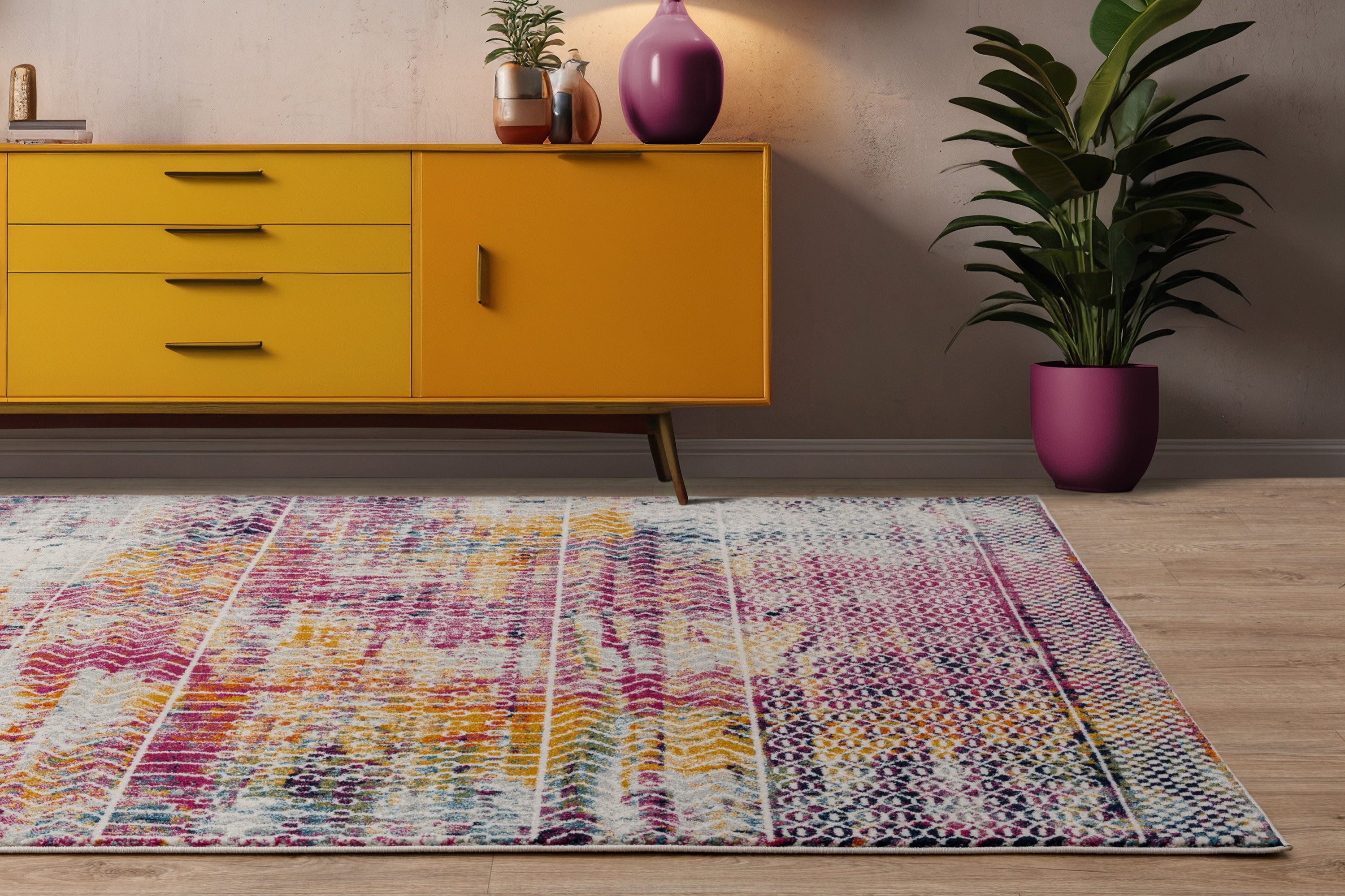 The Muse Tribal Bright MU26 by Asiatic London boasts bright colours and vintage inspired design. This rug will be an eye-catching focal point for any bedroom or living room. This rug has been created from polypropylene, an inexpensive wool alternative. Ideal for placement in high-traffic areas or busy family homes, polypropylene rugs offer excellent durability and are delightfully soft underfoot.