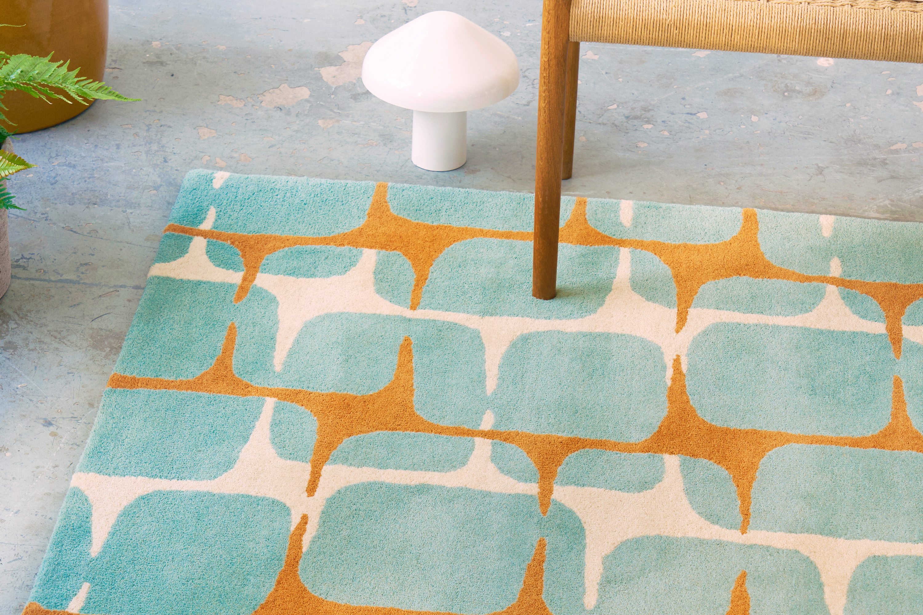 Expertly handtufted from 100% pure new wool, the new Scion Lohko Sky rug adds a playful and cozy touch to any space. Boasting a retro-style geometric design in shades of sky blue, orange, and cream this rug is a stylish and practical addition to living rooms, bedrooms and dining rooms alike. Add comfort and colour to your home with our Scion Lohko Sky rug.