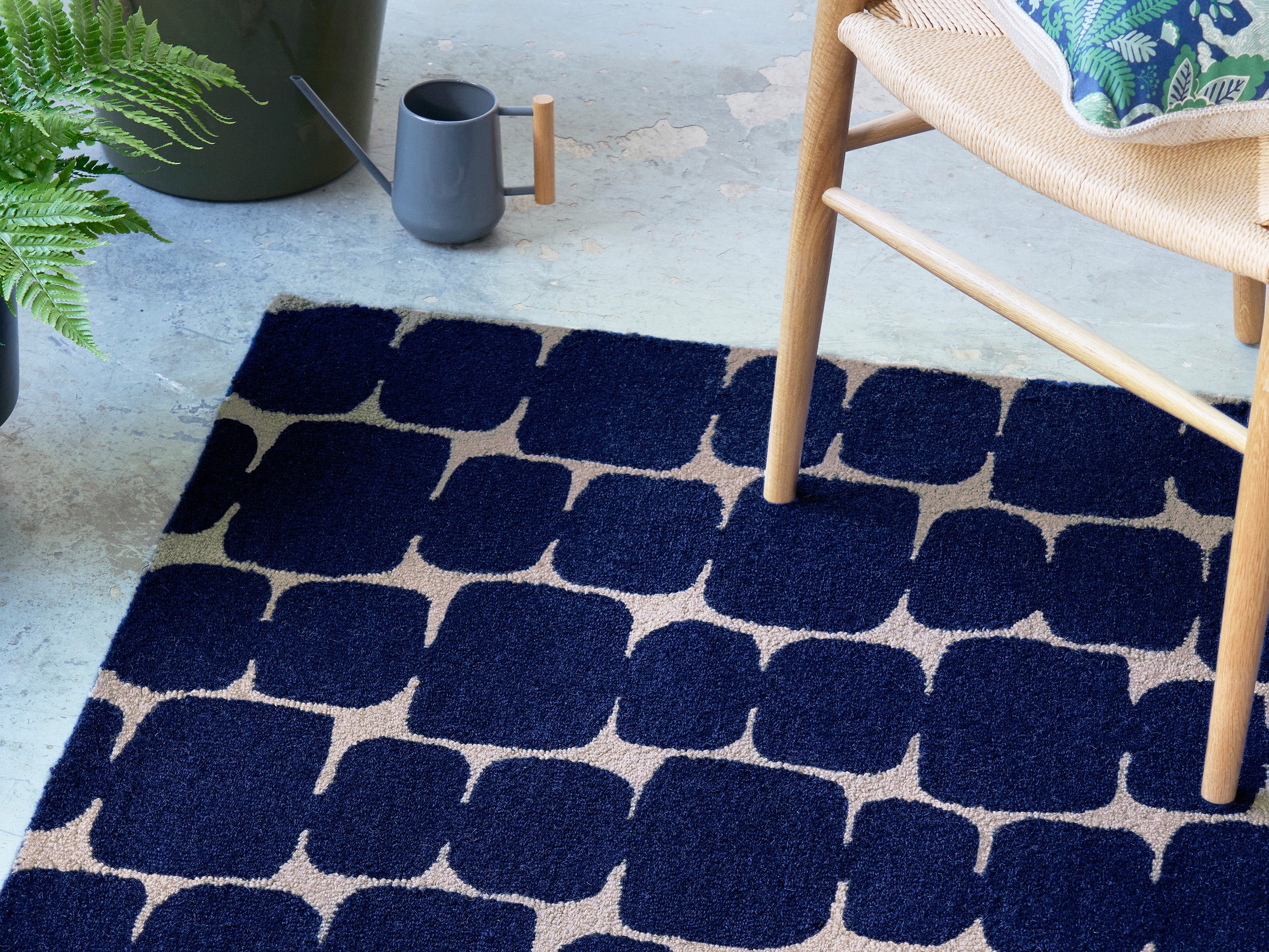 Expertly handtufted from pure new wool, the Scion Little Lohko Indigo rug boasts a striking geometric design in elegant navy and cream tones. The soft wool pile and sophisticated colour palette is sure to effortlessly elevate any existing decor, adding comfort and texture wherever it is placed. Available in three different colourways, the Scion Little Lohko range is designed to bring energy and vibrancy to any space.