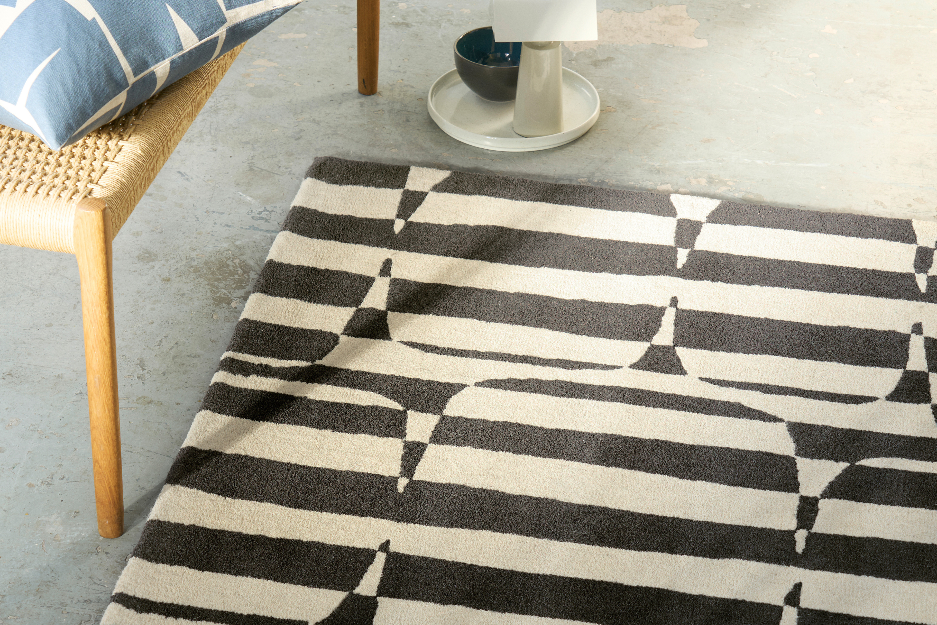 Featuring a striking monochromatic design in beige and cream tones, the Scion Lohko Stripe Charcoal rug is perfect for bringing a touch of energy into a space. Handtufted from pure new wool, this rug invites softness and warmth underfoot whilst being durable and easy to clean. The kinetic, overlaid pattern is sure to catch the eye, adding interest and depth to a range of interior spaces.