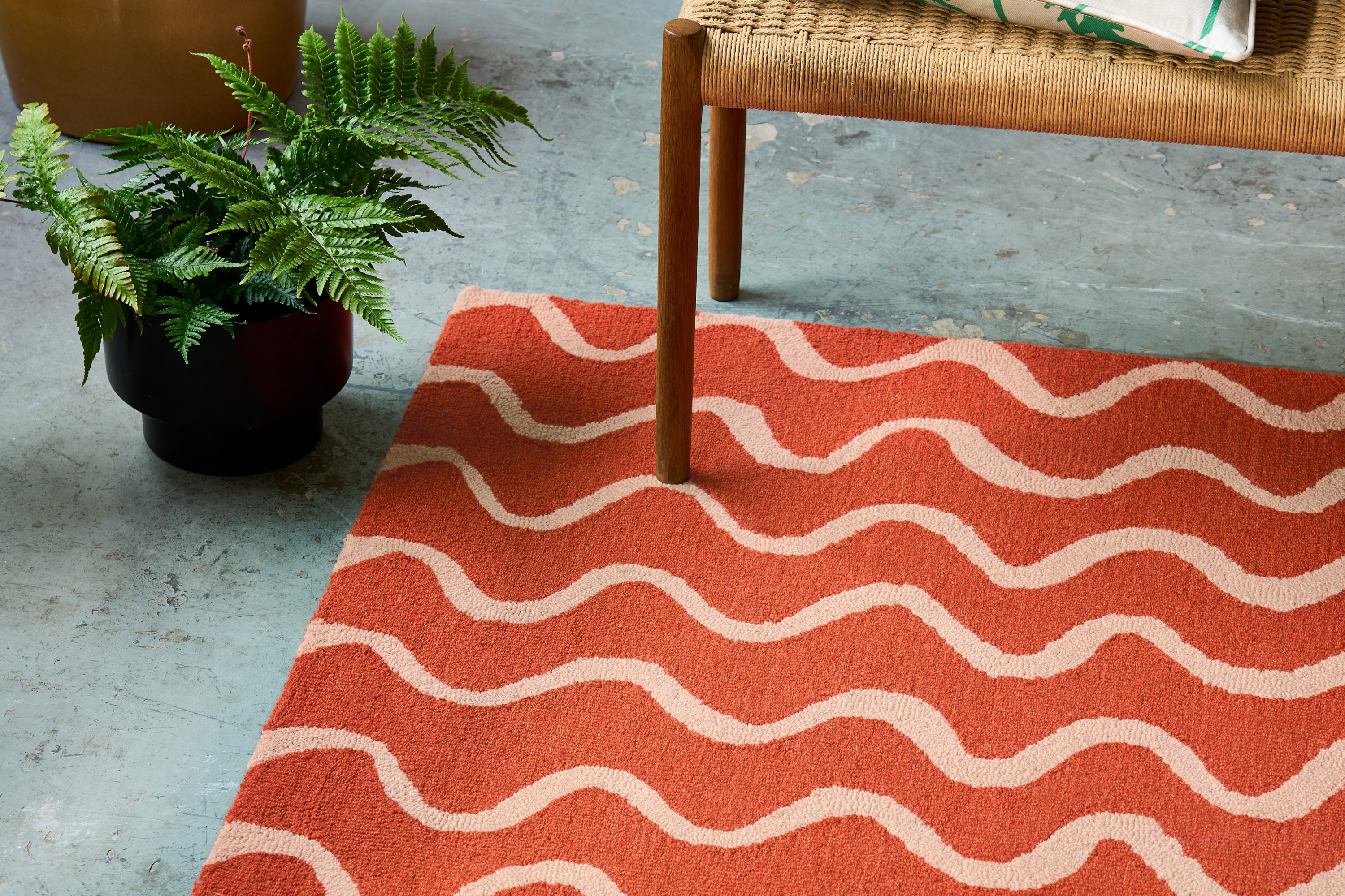 Elevate your interior space with the Scion Ribbon Coral rug. Crafted from pure new wool, this rug showcases a playful kinetic design with wavy stripes in bright coral and beige tones. Perfect for contemporary and eclectic interiors, the rug adds interest and movement to any room. Invite texture and interest to any room, with this stylish and versatile piece.