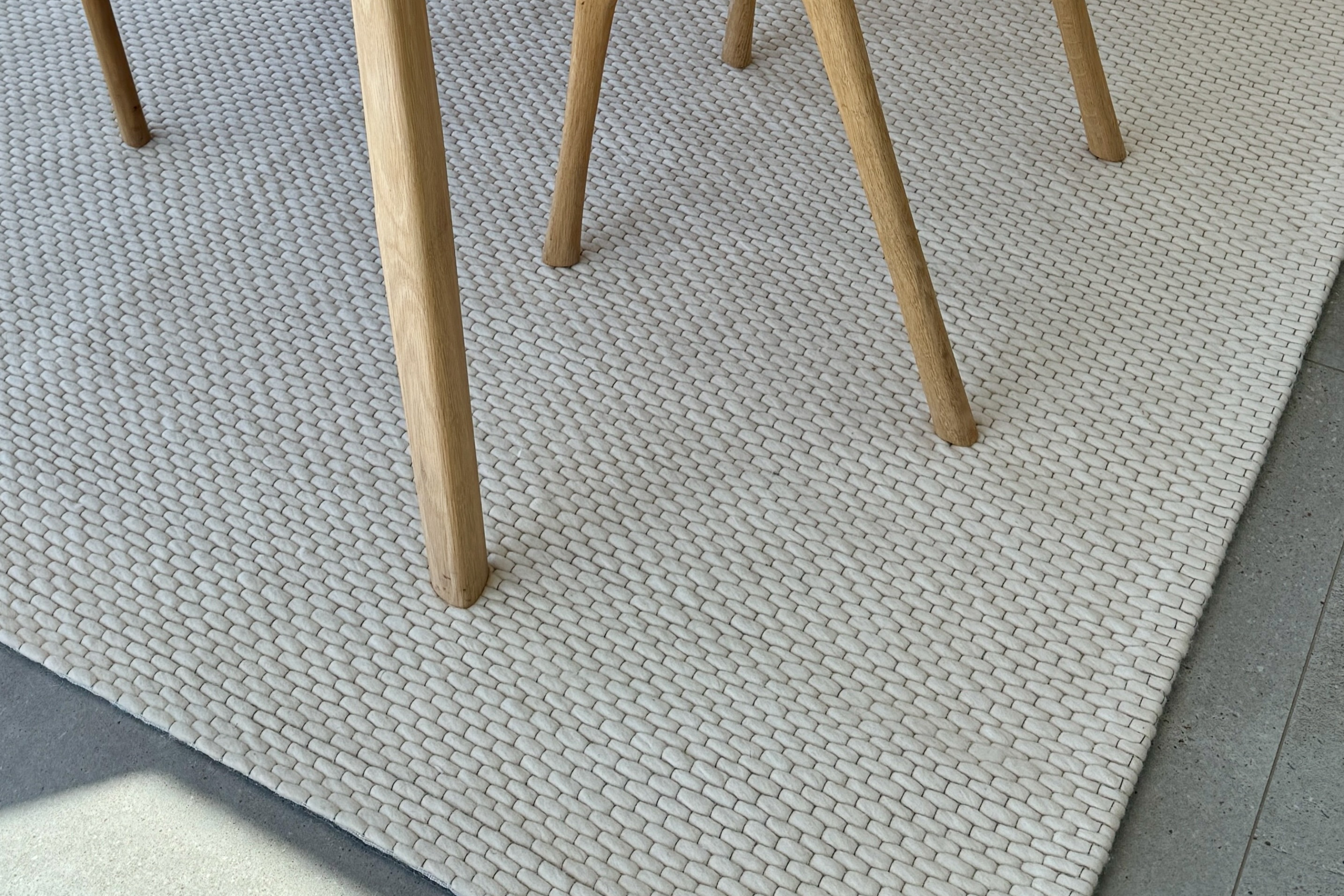 Soft white tones and minimalist design come together in our Sherkin rug to create a subtle yet elegant piece, perfect for modern and minimalist style interiors. Handwoven from pure wool, this rug invites softness underfoot whilst boasting durability and ease of maintenance. Place in your living room or bedroom for a touch of understated refinement.