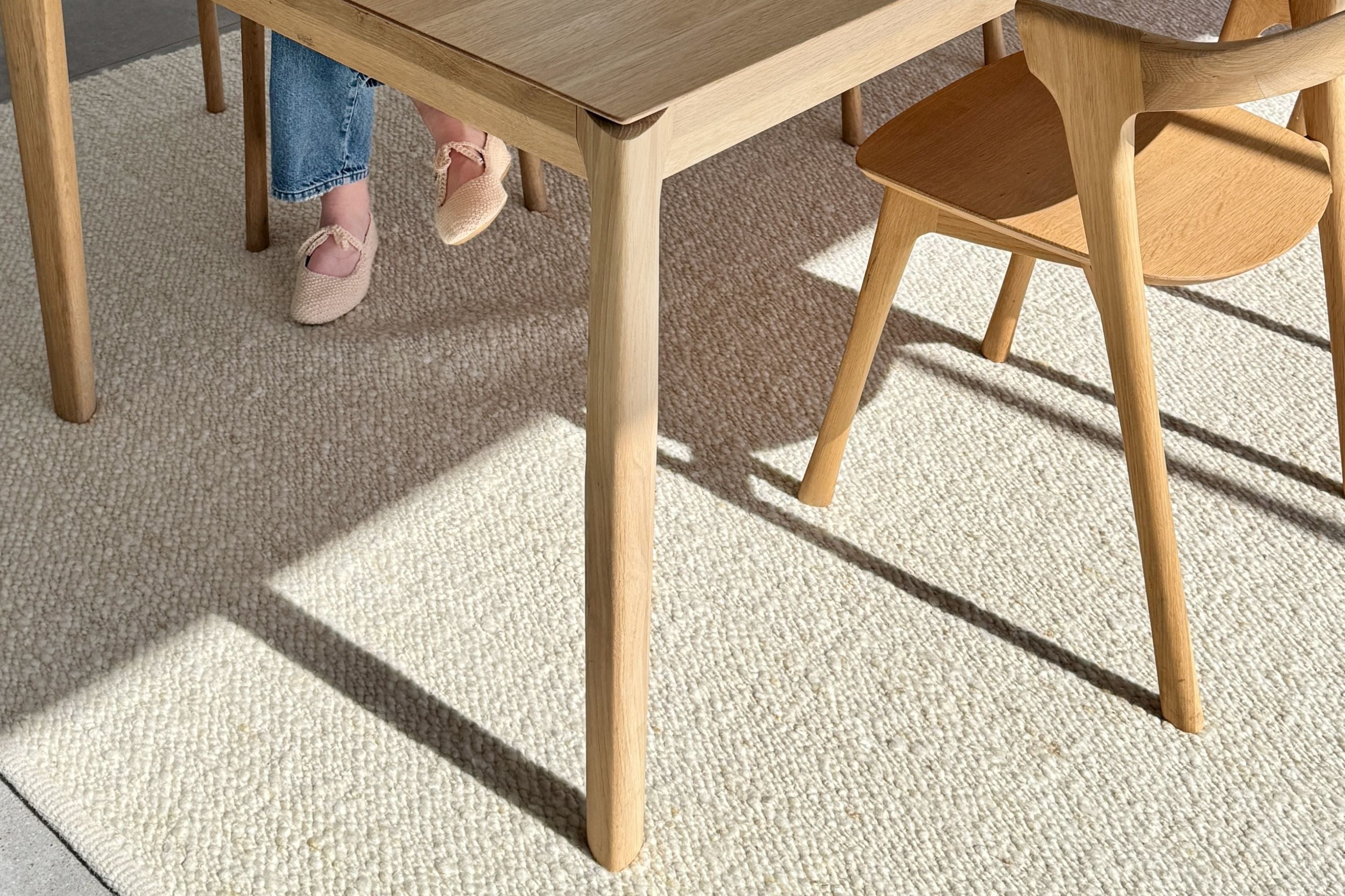 Expertly handmade from a wool and cotton blend, our Skellig rug offers luxurious texture and softness underfoot, perfect for bedrooms and living spaces. Featuring a dense, woven pile this rug is inspired by the rugged terrain of the Skellig Islands. The warm white and cream tones and durable pile make this rug a versatile and practical addition to any home, classic or contemporary alike.