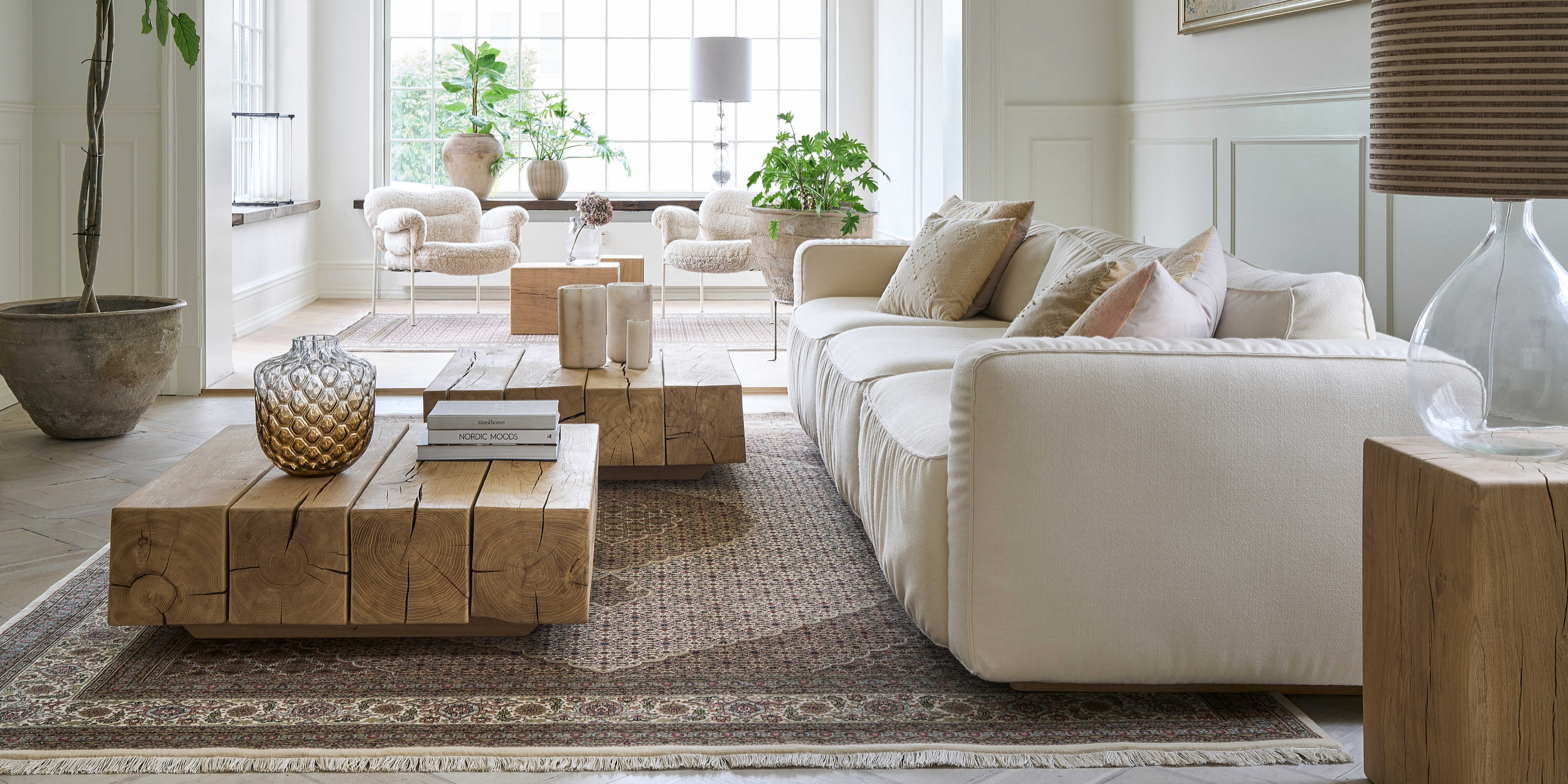 Tabriz Indis are classical hand-knotted rugs from India, with designs inspired by the original Persian Tabriz rugs. The rugs have classical, toned-down colours that go well with modern Scandinavian style. Tabriz rugs are usually structured around a central medallion surrounded by a mahi pattern. There is some difference in quality between Royals and Indis, but it is not easily observable.