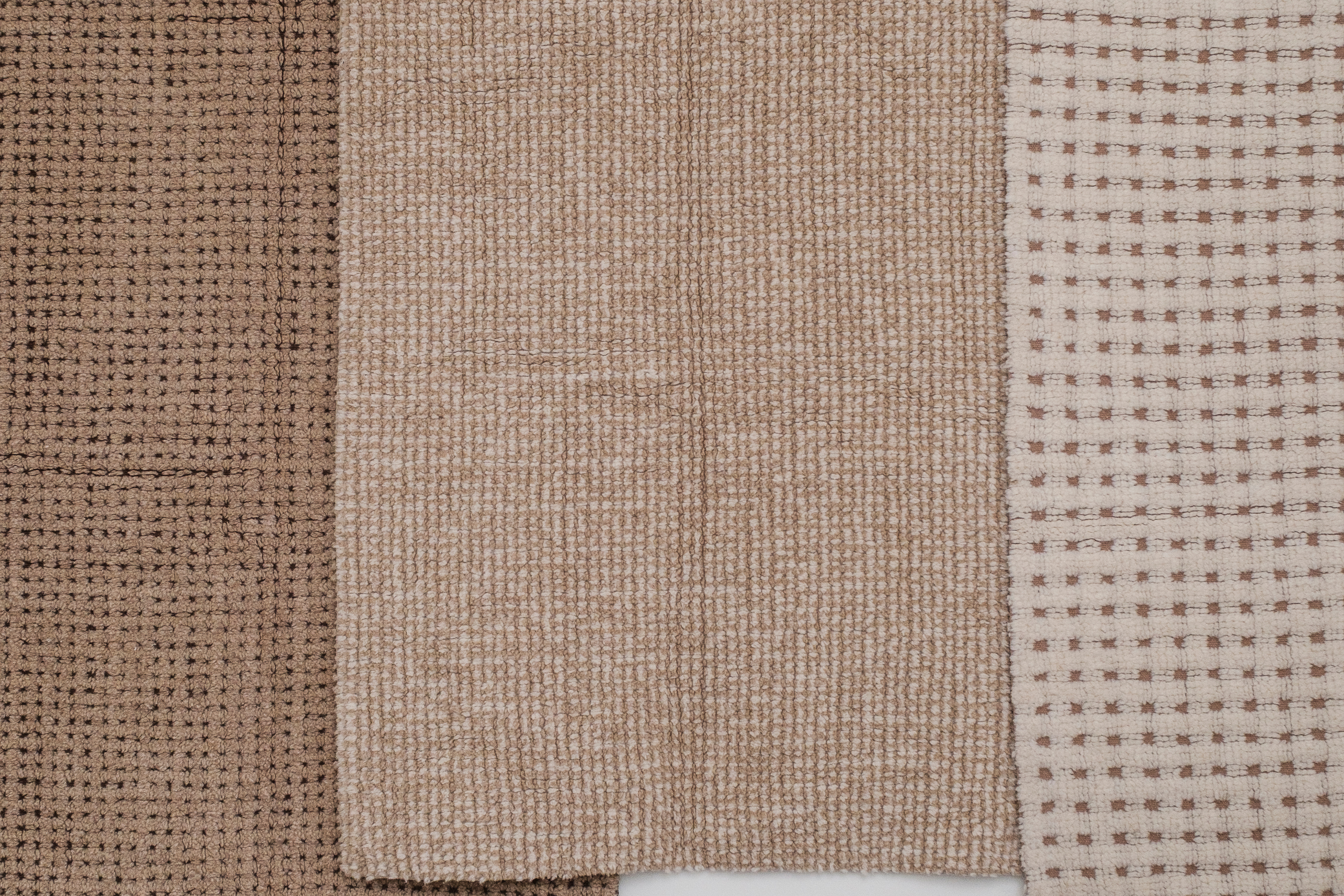 The Wool Rug Blur by Lorena Canals is an exquisitely handcrafted wool rug featuring small, irregular squares. Each square is sewn in alternating directions, merging thread and fabric into a distinctive texture shaped by the artisan’s skill. Set on a rich brown and natural foundation with delicate beige and sandstone hues, this rug introduces understated natural sophistication to any living room or bedroom.