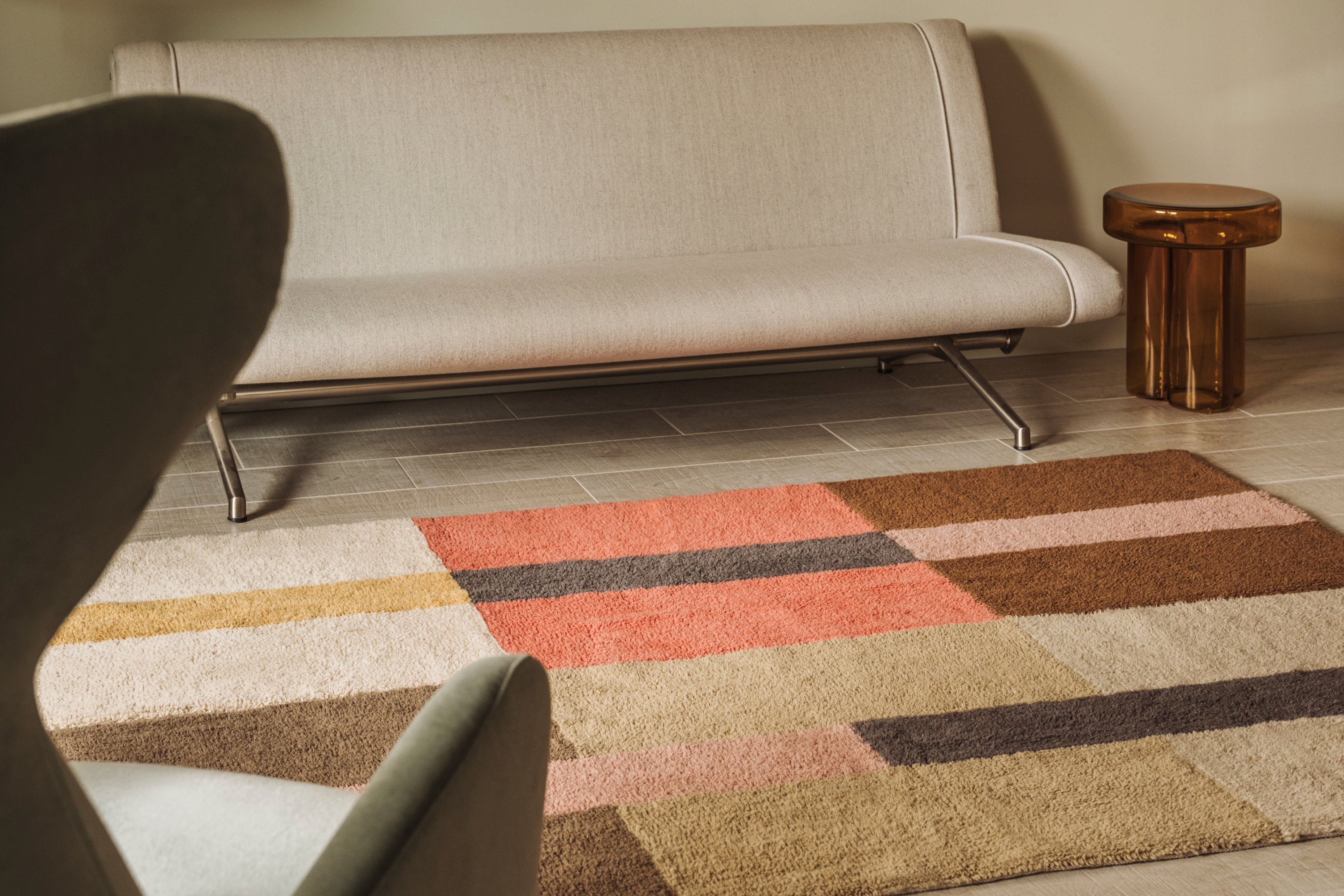 The Wool Runner Chroma Spiced Coral by Lorena Canals infuses your home with subtle vibrancy through its elegant patchwork design in Spiced Coral, Walnut, and Sea Shell, accented by lines in Dusty Pink, Charcoal, and Caramel. Ideal for living rooms, kitchens and hallways, it will bring interest to any space.